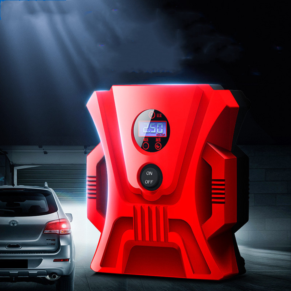 Additional functions: Inflate, measure tire pressure, lighting