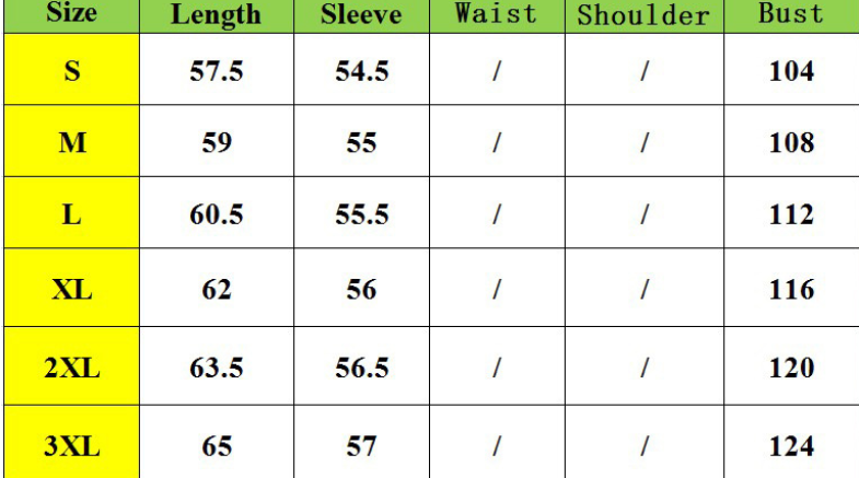 Size:S,M,L,XL,XXL,XXXL unit:cm