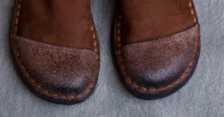 Vintage Leather Flat Soft Sole Hand Pleated Shoes