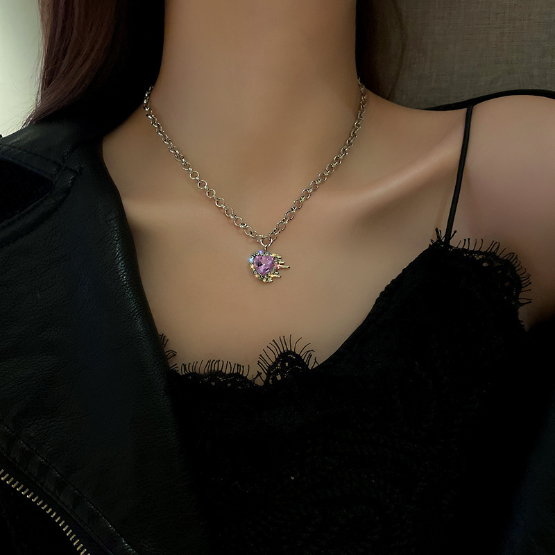 Women Fashion Vintage Crystal Purple Heart Necklace Earrings