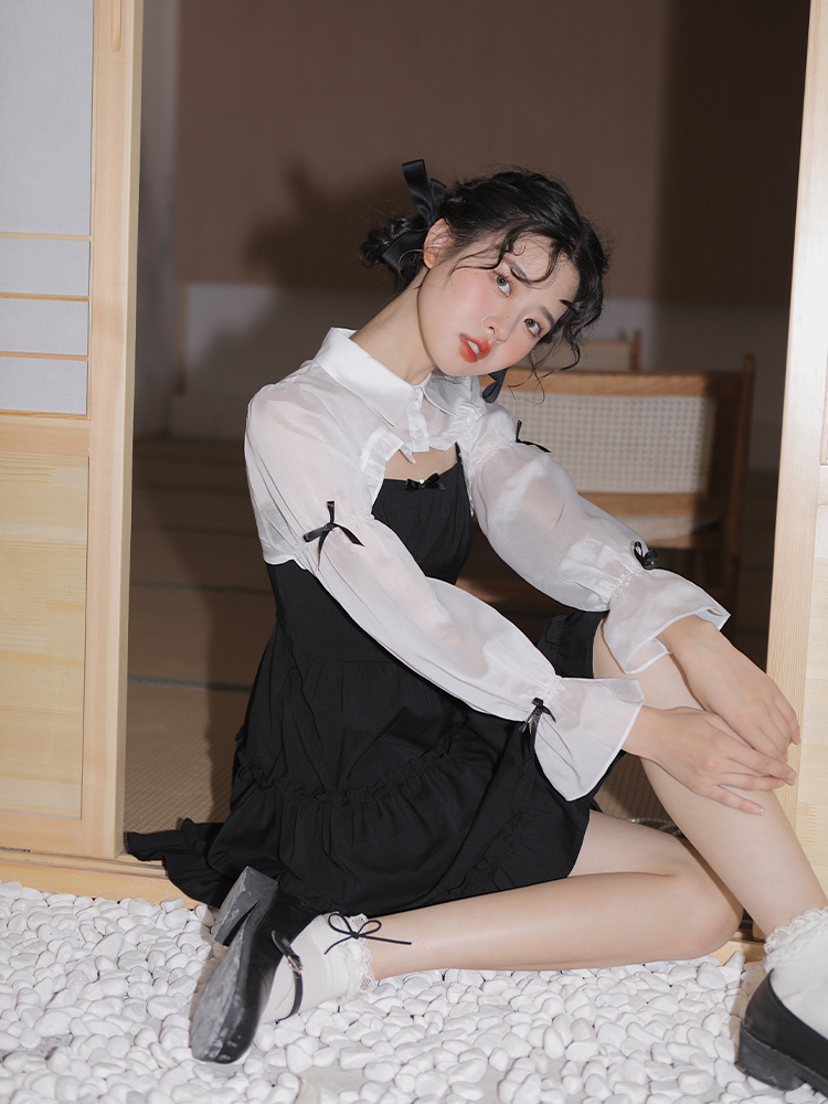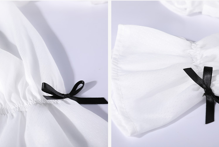 Clothing style details: bow, fungus, three-dimensional decoration, buttons