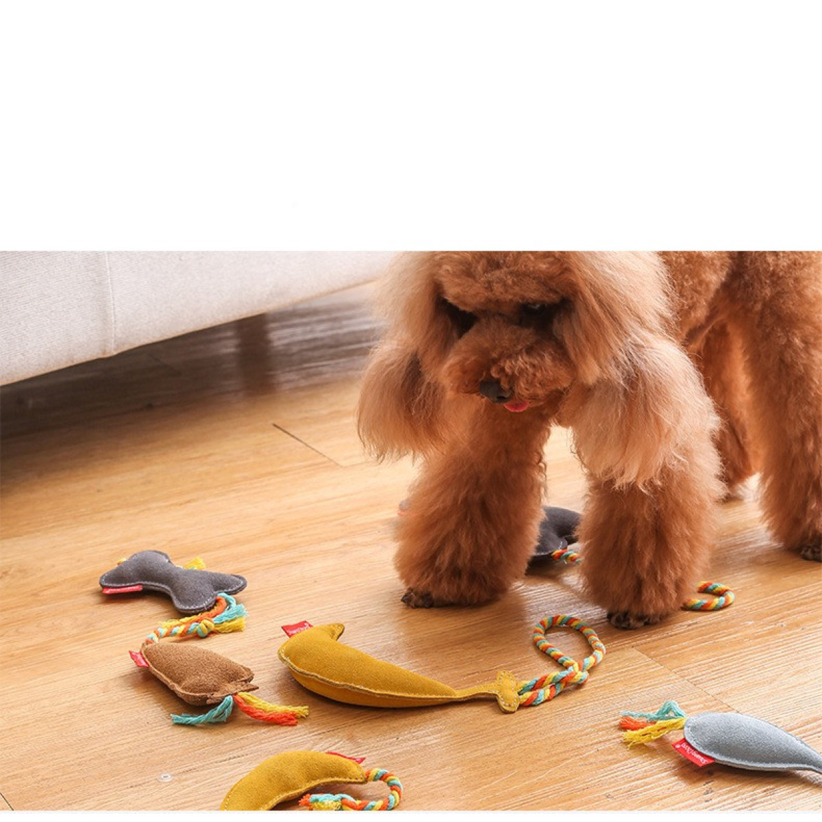 Material: cowhide + cotton + sounding toys