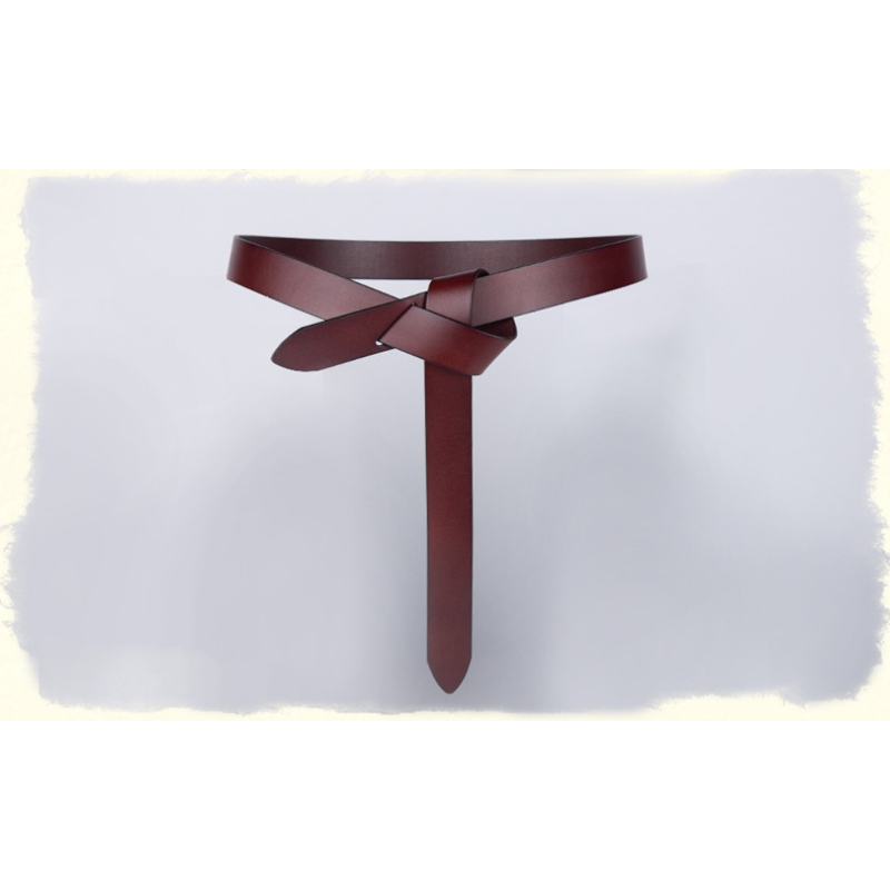 Material technology: headless knotted Italian first layer cowhide women's thin belt
