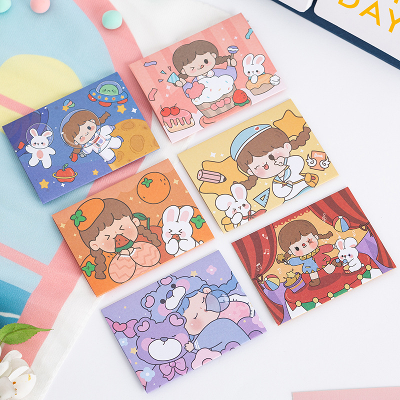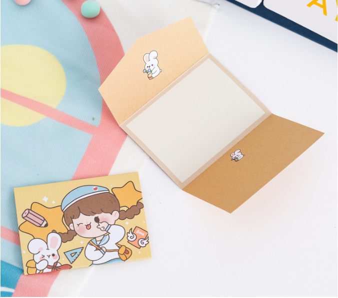 Color: tri-fold small greeting card blue space girl, tri-fold small greeting card purple bear girl, tri-fold small greeting card yellow bunny girl, tri-fold small greeting card yellow circus girl, tri-fold small greeting card pink cake girl, tri-fold small greeting card orange orange girl