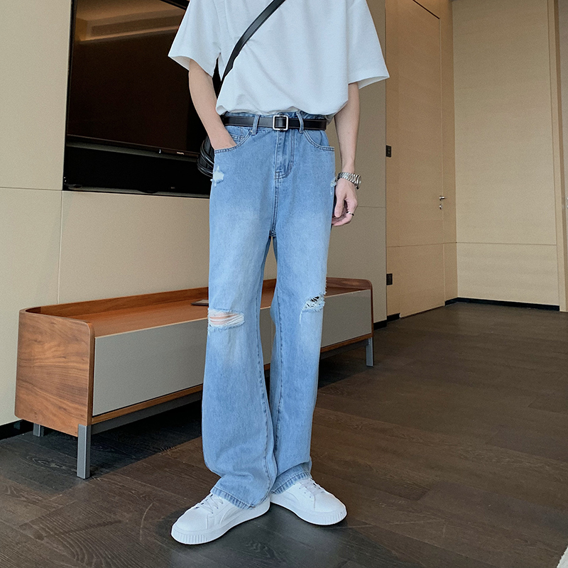 Ruffian Handsome Knee Ripped Jeans Men's Loose Straight