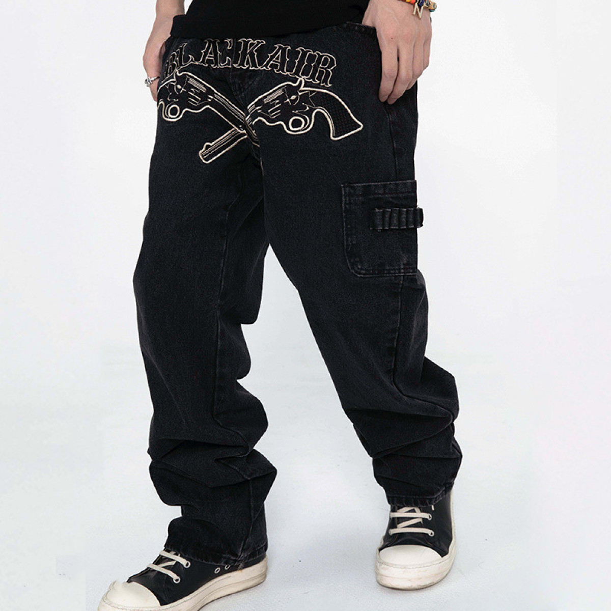 Western Revolver Embroidered Denim Trousers Men's