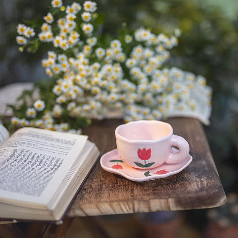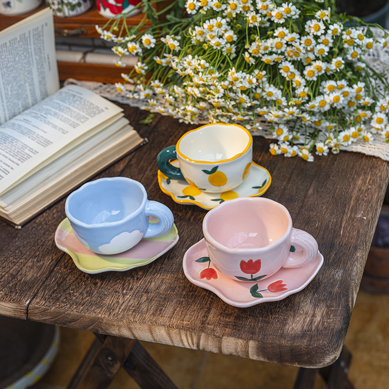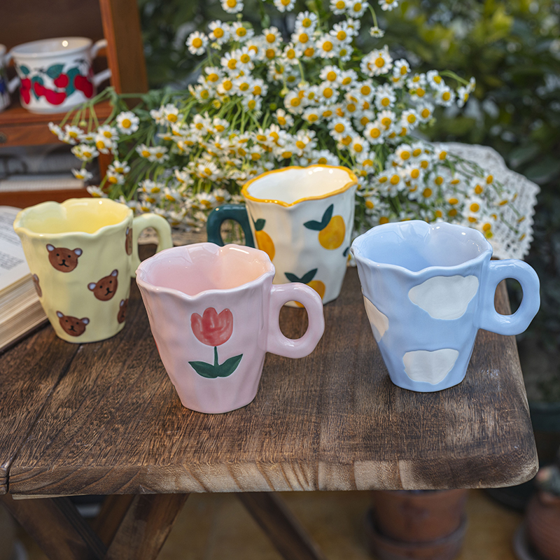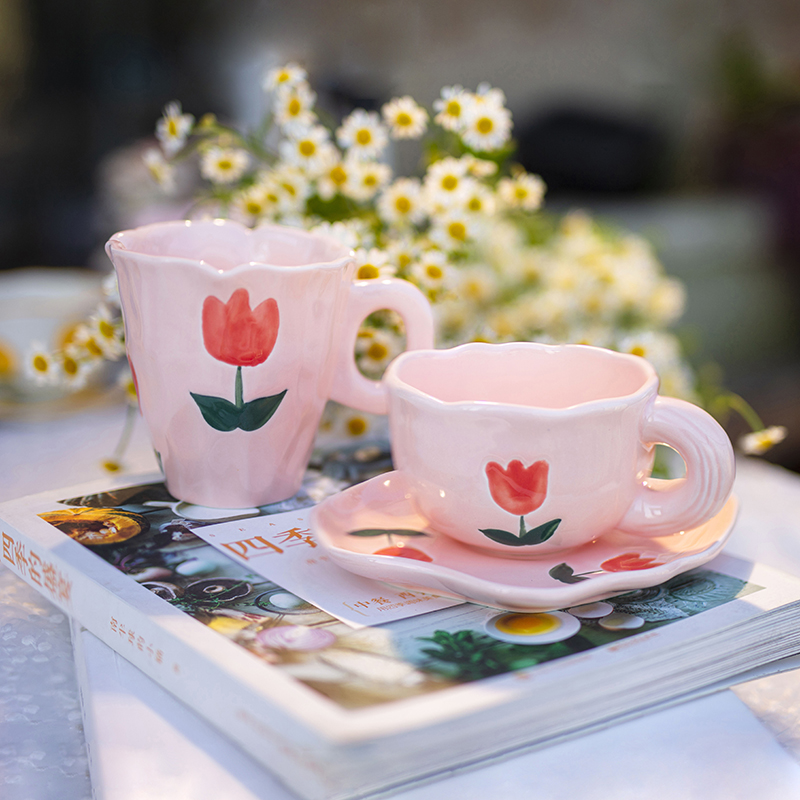 Color classification: Pink tulips (mugs), pink tulips (coffee cups), pink 2 sets of coffee cups, gift boxes, bears (mugs), blue clouds (mugs), blue clouds (coffee cups), clouds (2 sets), oranges (marks) Cup) Oranges (Coffee Cups) Oranges (2-Piece Sets) Coffee Cups 3 Sets of Mugs 4 2-Piece Sets Gift Boxes High-value Hand-painted Flowers Underglaze Color Ins Wind Thick Wall Exquisite High-end Petty Bourgeois Afternoon Tea Tea Set
