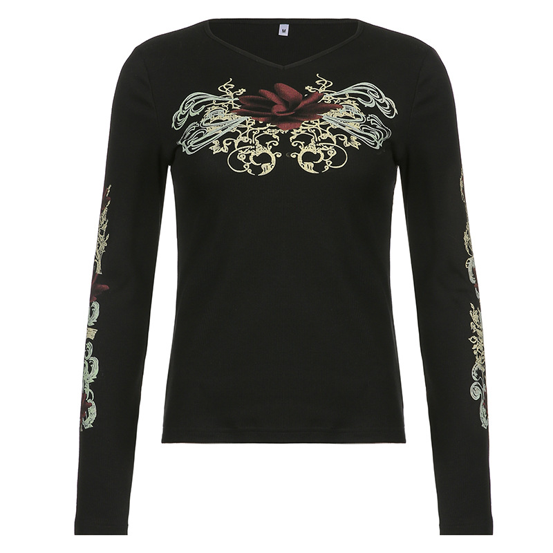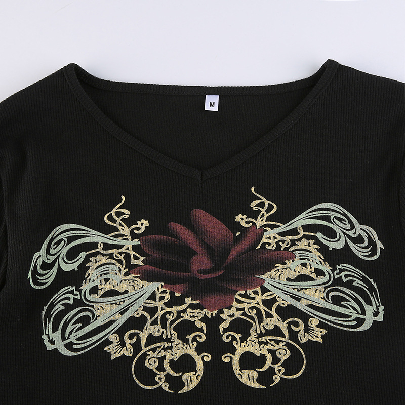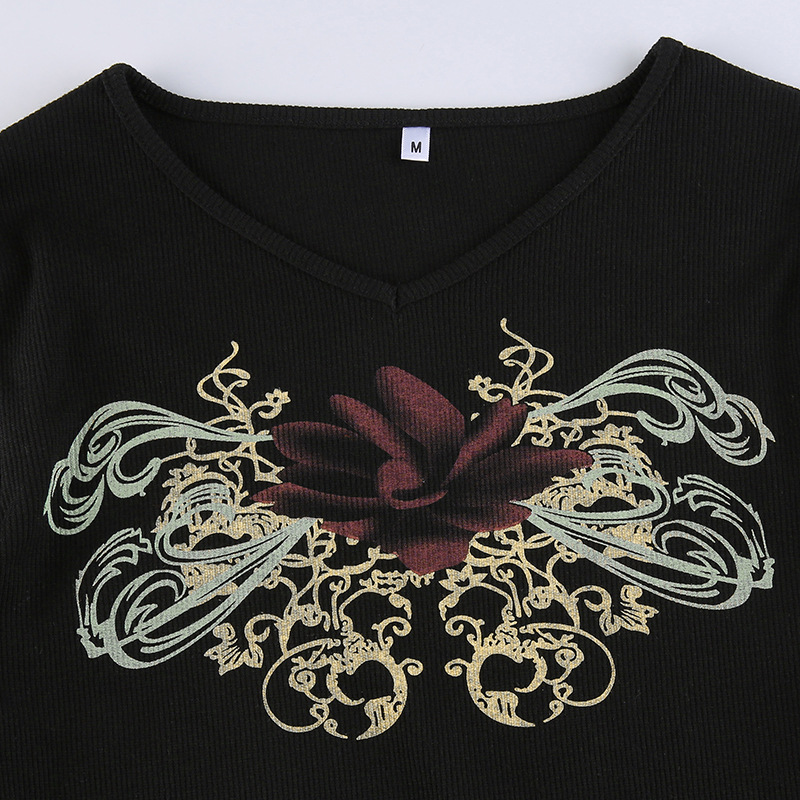 Women's Ins Street Retro Print Crew Neck T-shirt