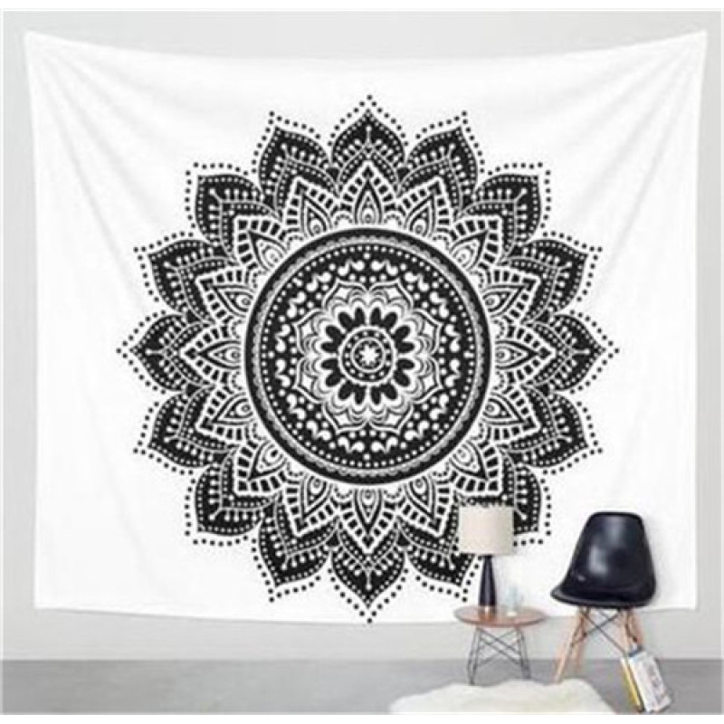 Color: white flower mandala on black background (148 X200cm), black check in the white background Mandala (148 X200cm), peacock blue Mandala (148 X200cm), Red Blue Peacock Mandala (148 X200cm), Blue Mandala (148 X200cm), golden Mandala (148 X200cm), khaki Mandala (148 X200cm), Van Gogh Starry Sky Mandala (148 X200cm), Apollo Mandala (148 X200cm)