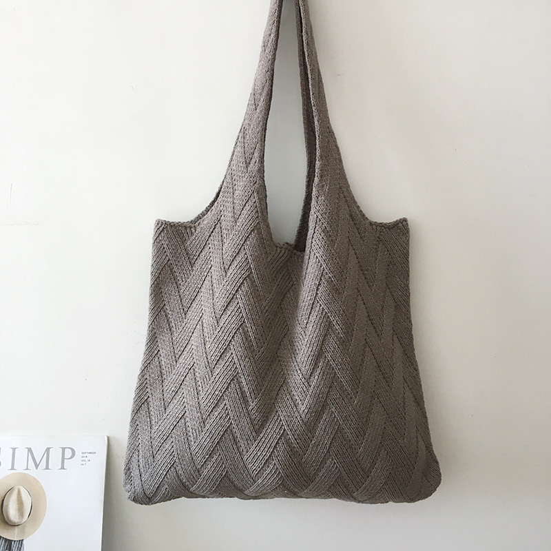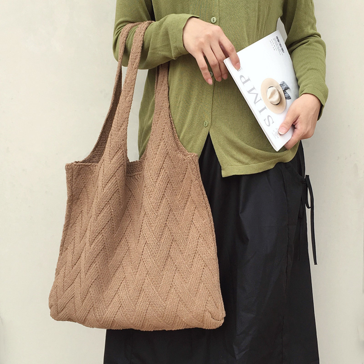 Avocado Green Knit Tote One-Shoulder Sweater Bag