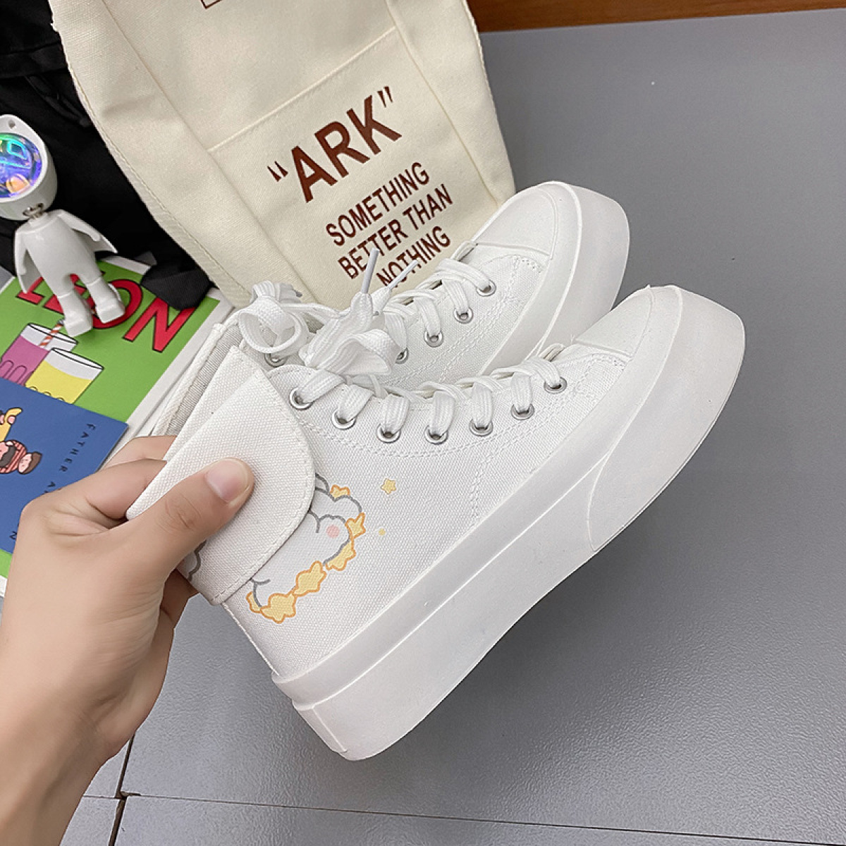 Japanese College Style Cartoon Thick Soled White Shoes Casual Sneakers