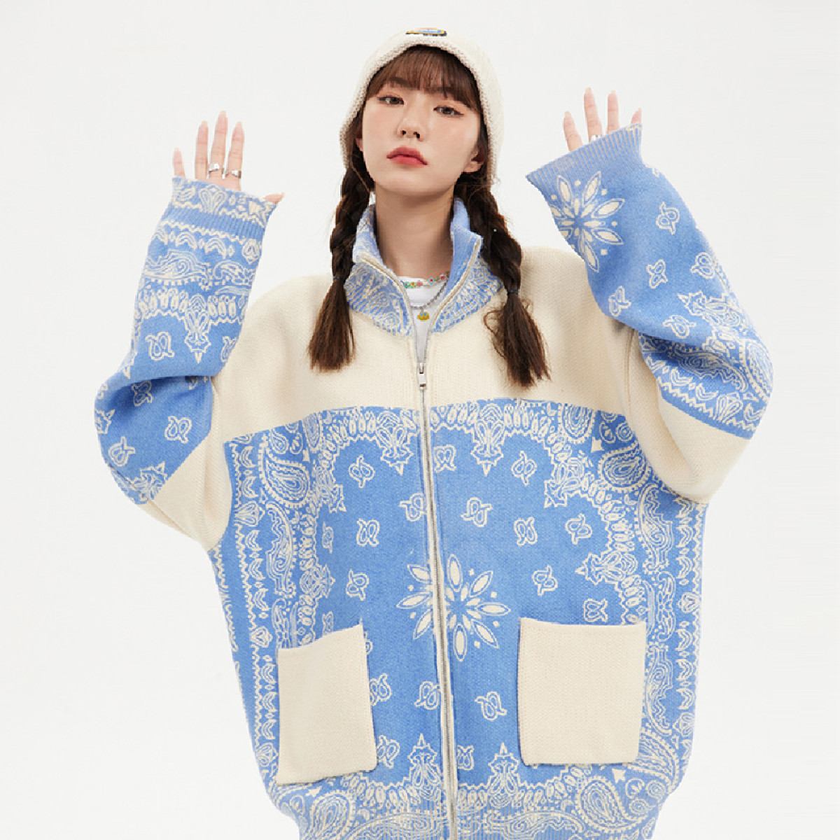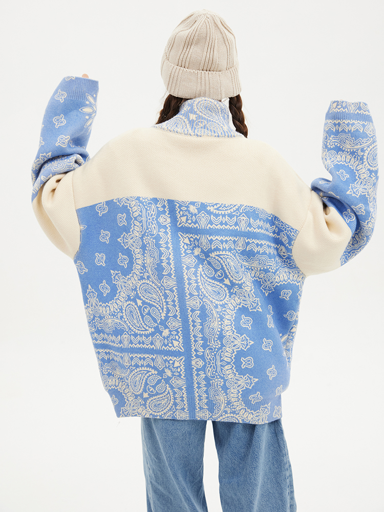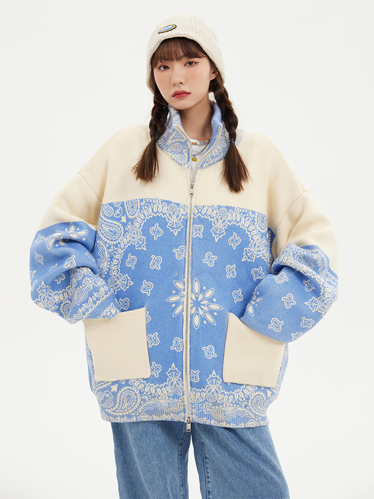 Loose Knit Cardigan Cashew Flower Casual Sweater Jacket