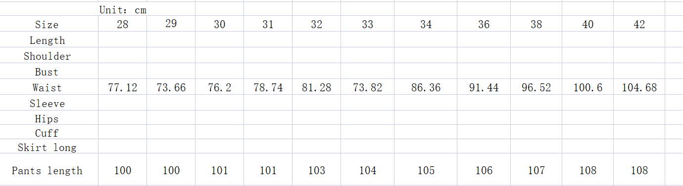 Size :28,29,30,31,32,33,34,36,38,40,42