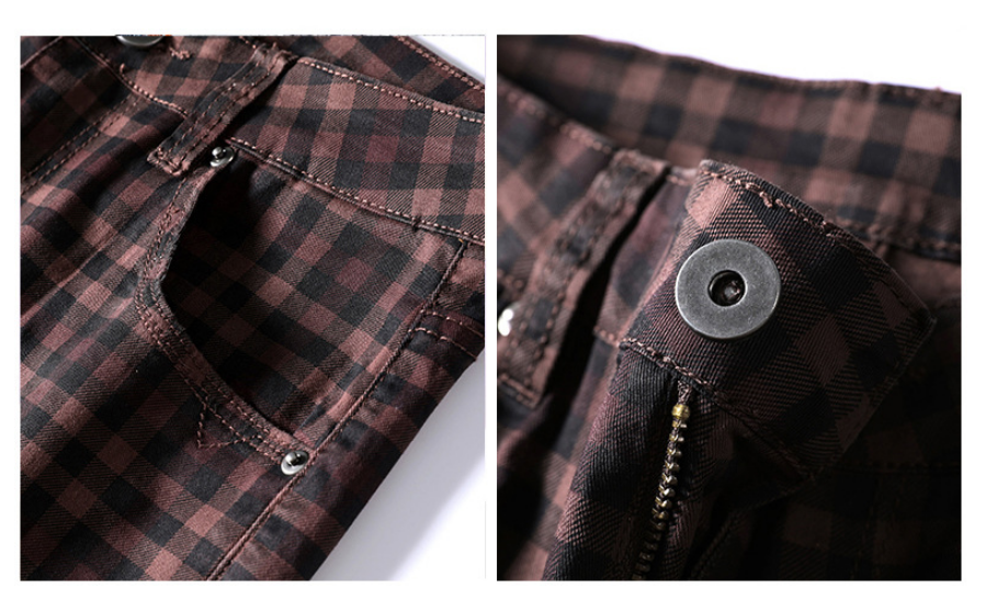 Slim Fit Cotton British Plaid Trousers