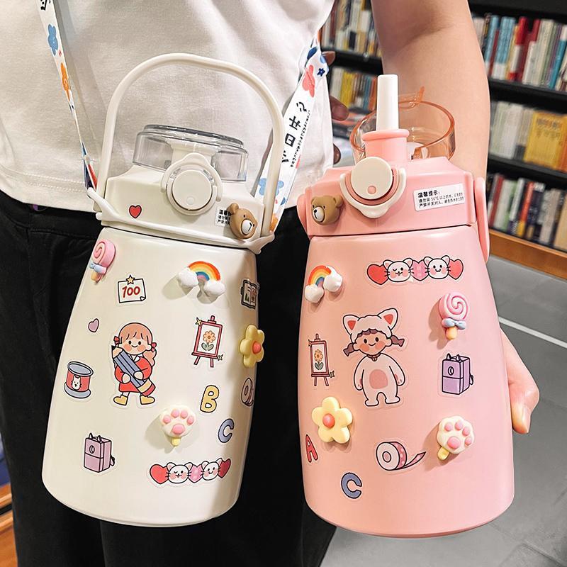 Style: 1100ml + free strap + cartoon sticker + 3D accessories,