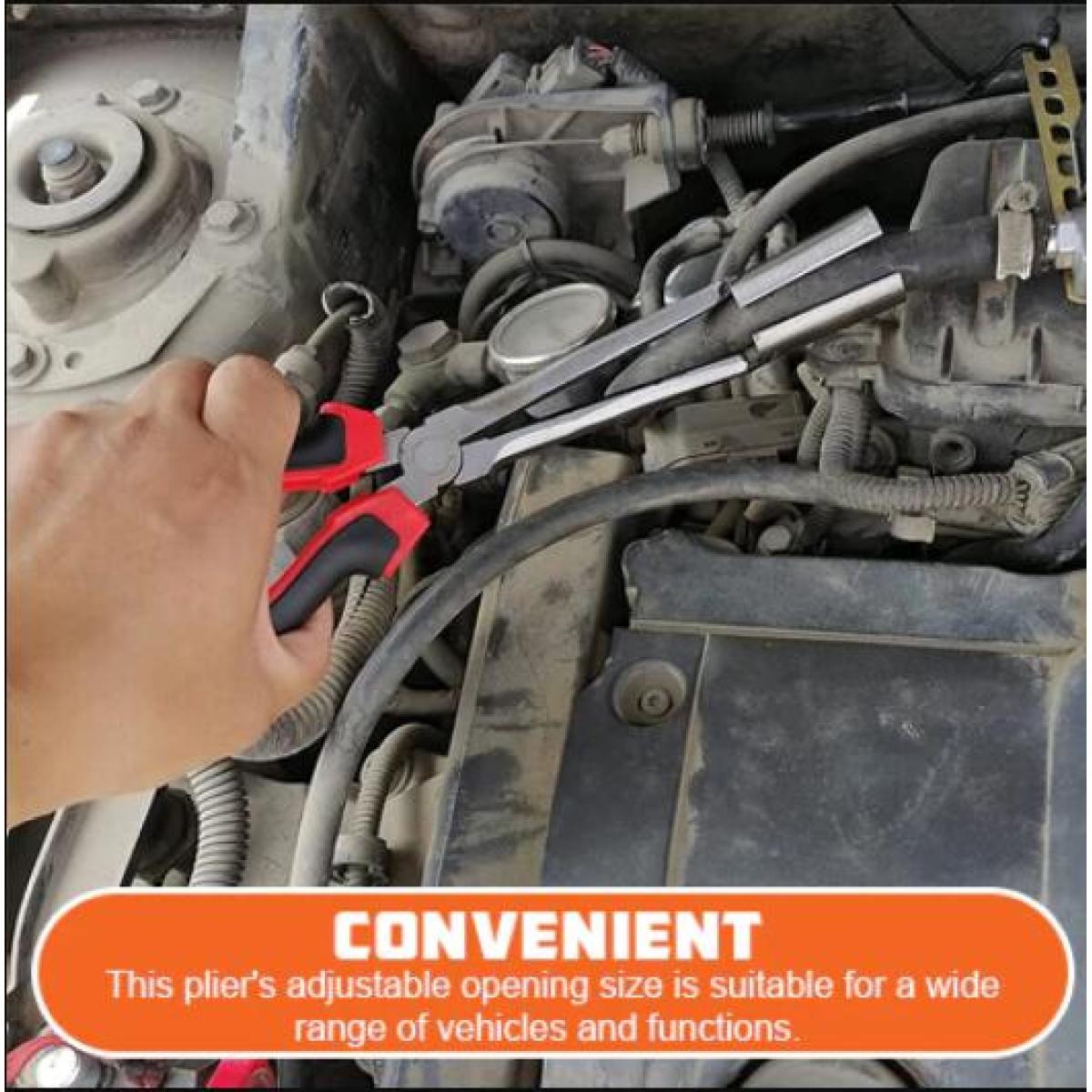 CONVENIENT: The adjustable opening size of this pliers is suitable for a variety of vehicles and functions. The sloping design allows easy access to some hard-to-reach places.