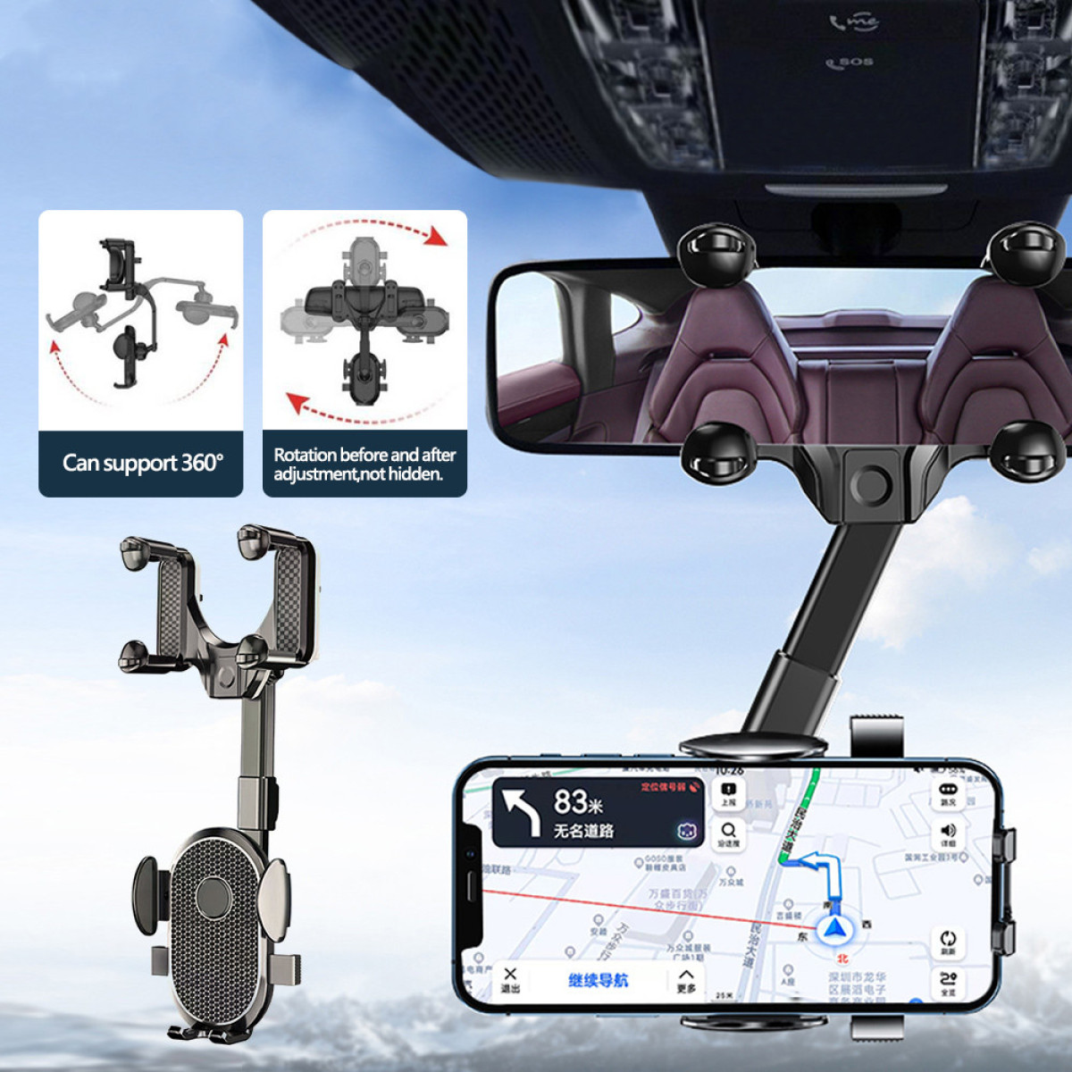 New Car Mobile Phone Holder Rearview Mirror Navigation Multifunctional Support Frame