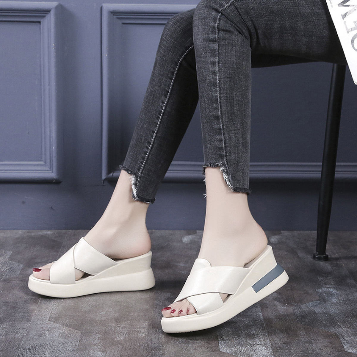 Color: black, beige, black-buckle, beige-buckle