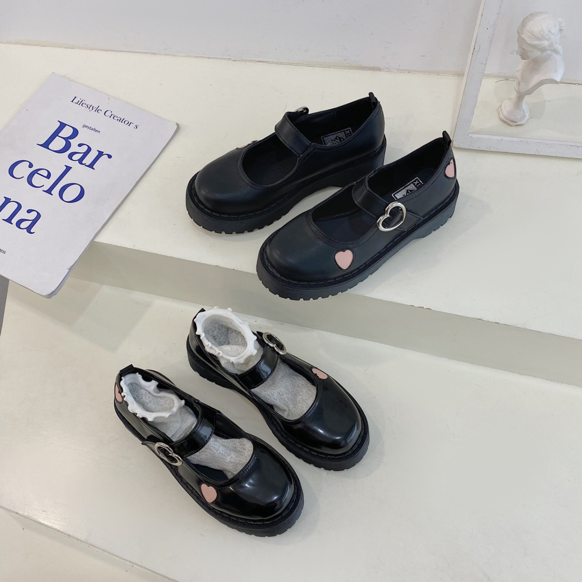 Women's Love Leather Shoes Japanese Harajuku Platform Mary Jane Shoes Retro British Style Round Toe Student