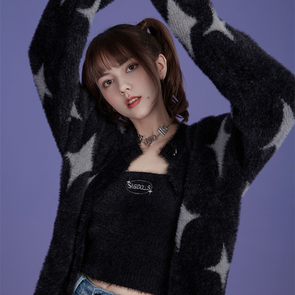 Milk Cool Silver And Black Star Mink Velvet Sling Jacket