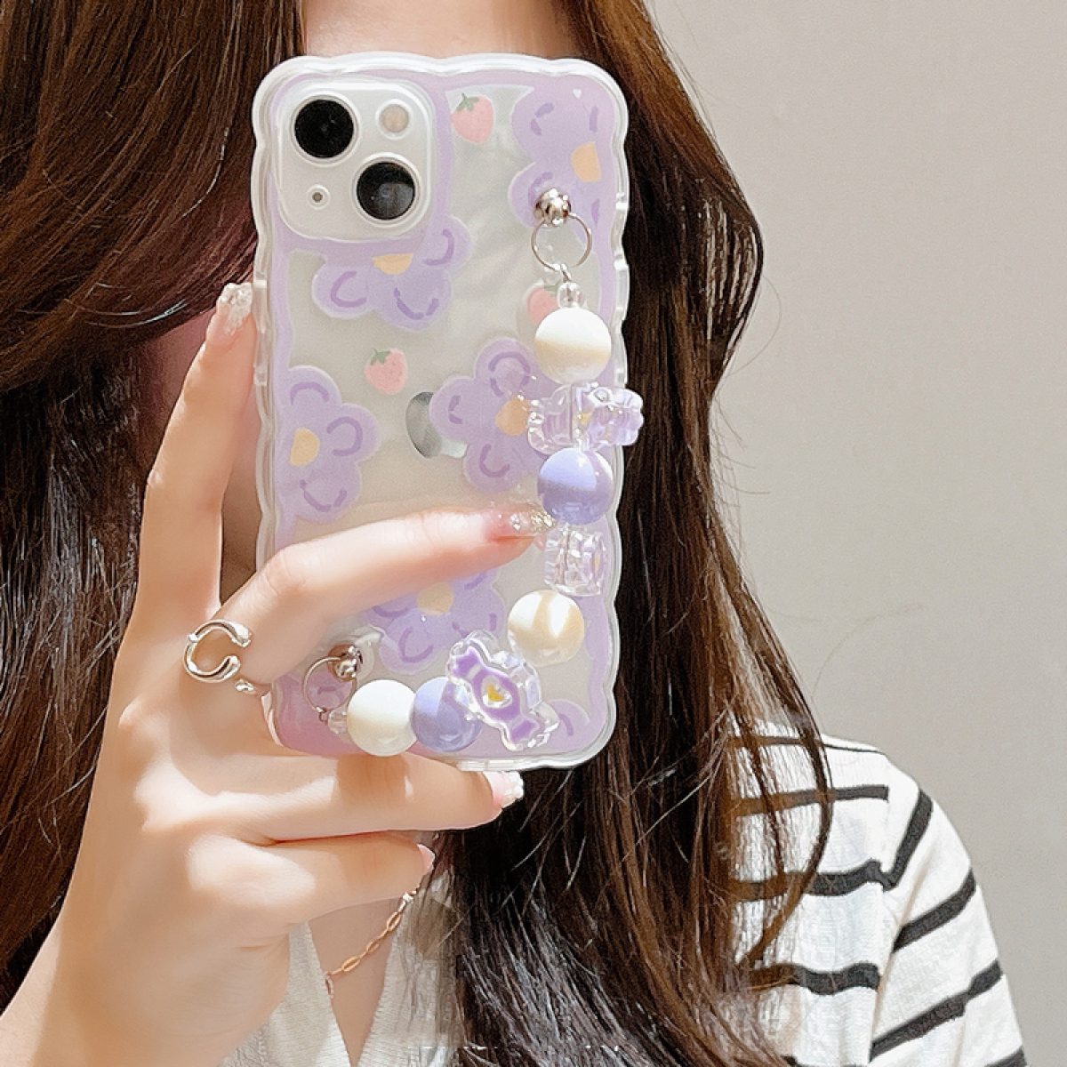 Purple Flower Chain For IP13 Transparent Phone Case