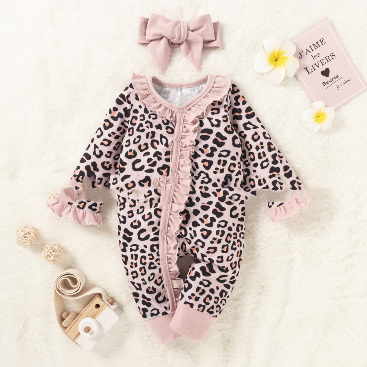 One-piece Leopard Print Single-row Long-sleeve Romper