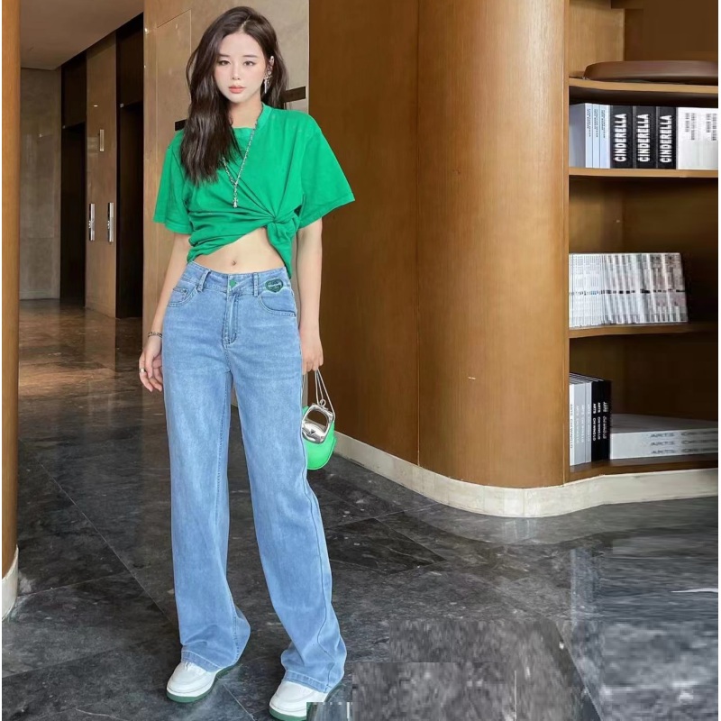 Women's New Style Straight Loose Middle And High Waist Jeans