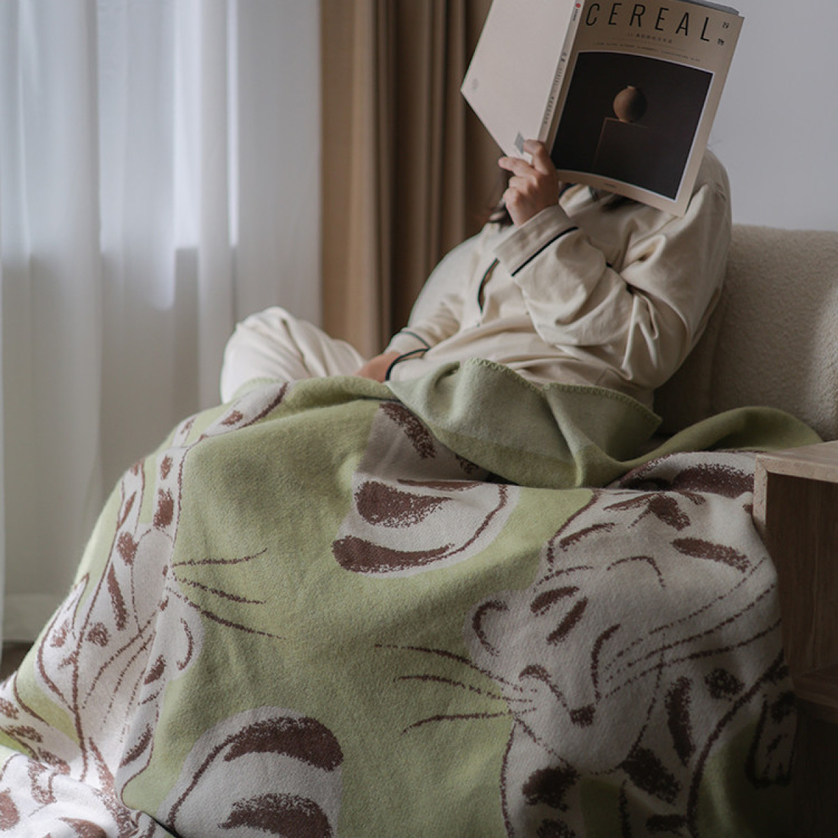 Little Tiger Mianmian Blanket Milk Green Thick Cashmere Leisure