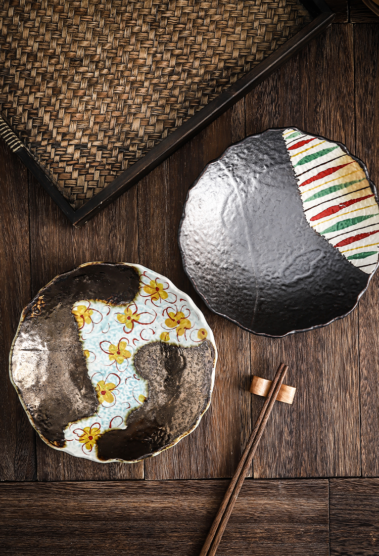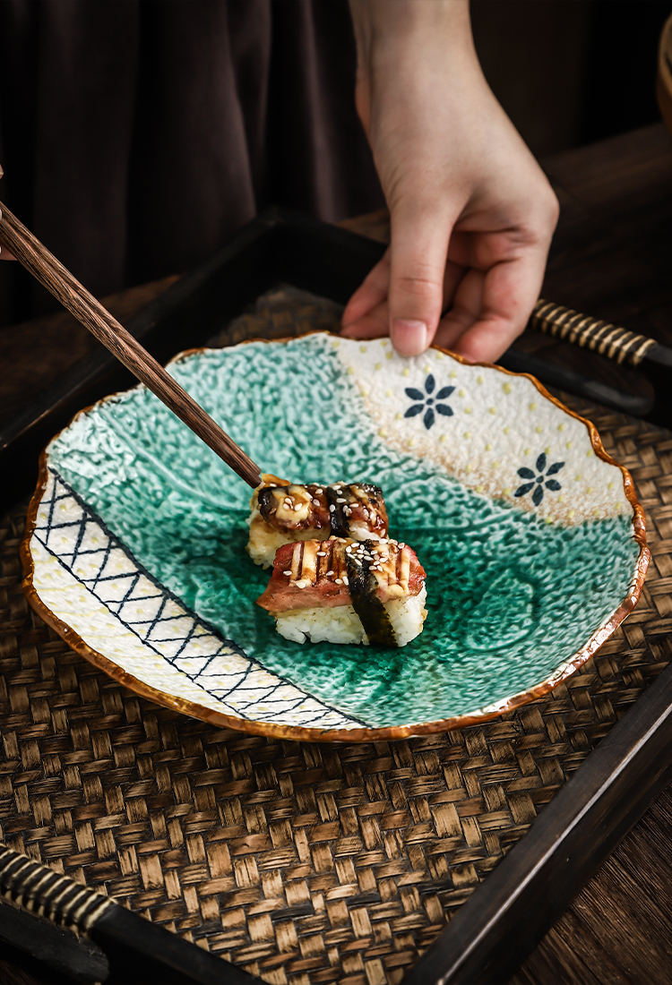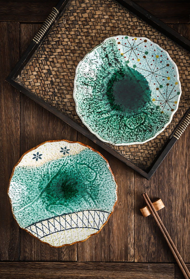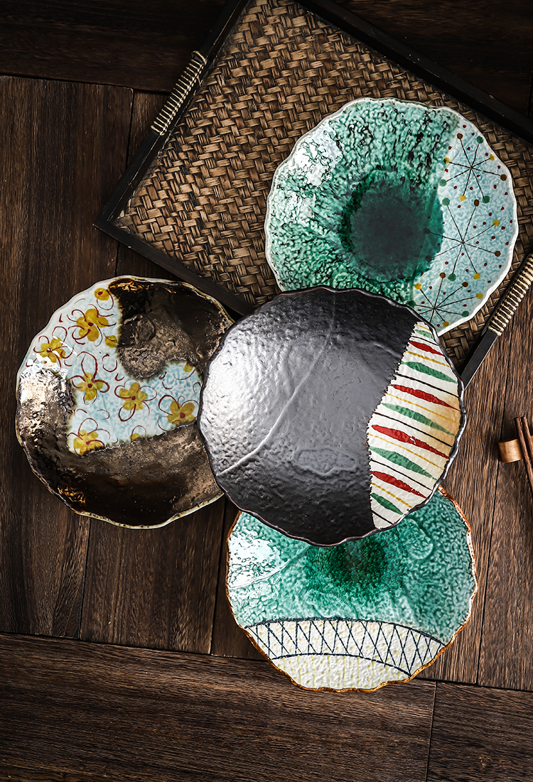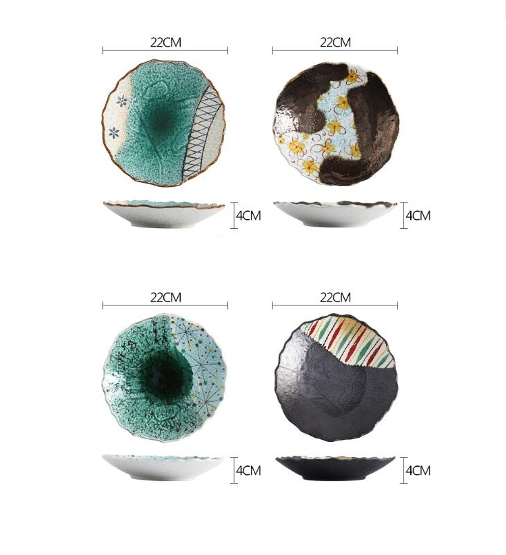 Hand-painted Marbled Polygonal Round Dinner Plate