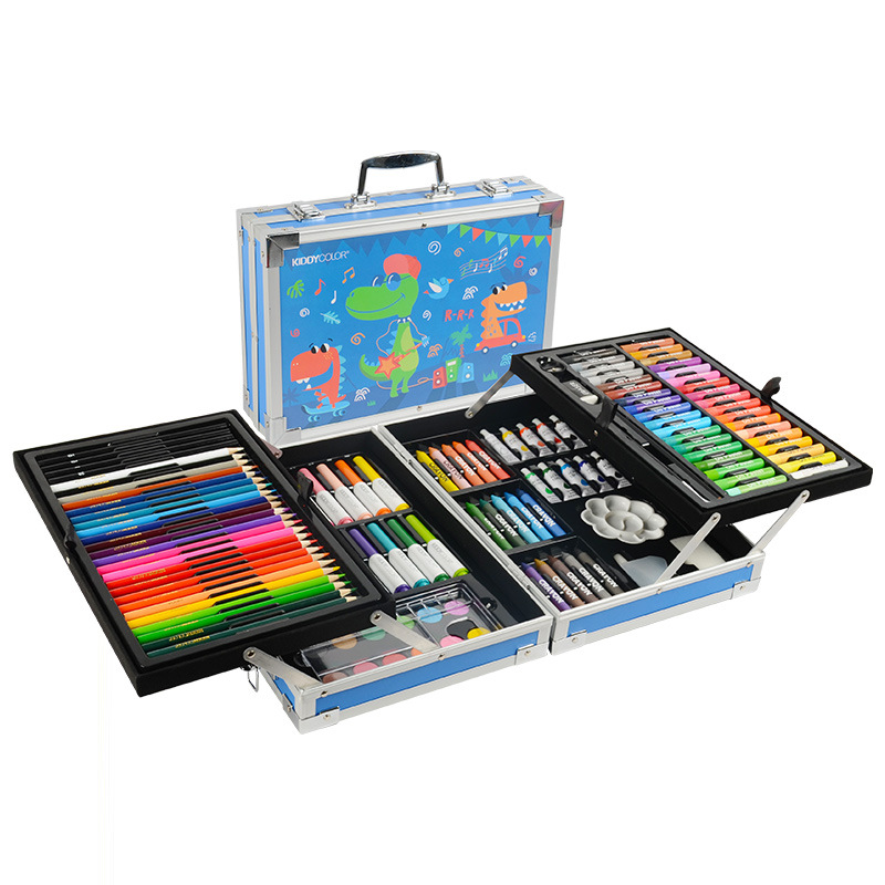 36-color oil pastels, 28-color water-soluble color pencils, 20-color watercolor pens, 18-color crayons, 12-color solid powder, 10-color acrylic paints, 2 palettes, 1 kettle, 1 sponge, 1 paintbrush, 1 1 pencil, 1 eraser, 1 sharpener