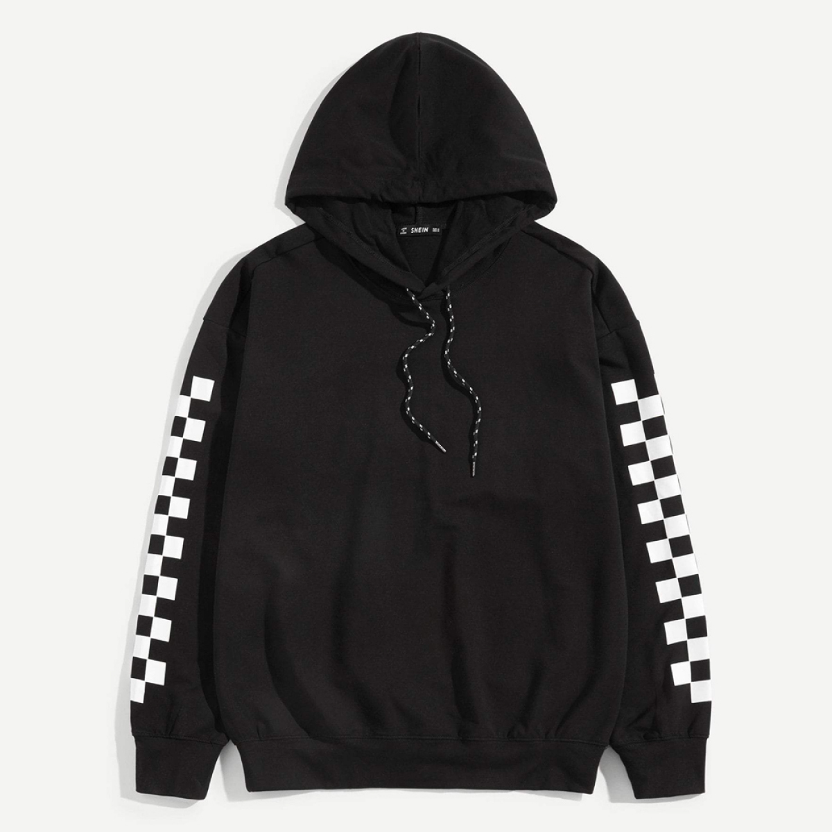 Black Plaid Hoodie Solid Color Versatile Loose Student Hoodie