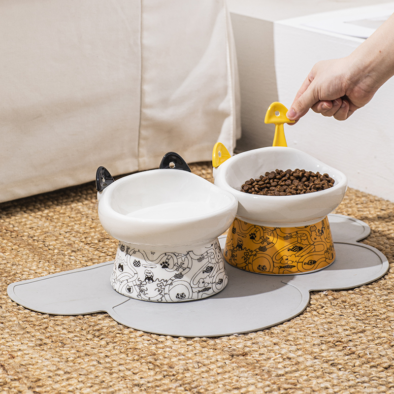 Color classification: Green (with 2 green cat-ear spoons), yellow (with 2 yellow cat-ear spoons), pink (with 2 pink cat-ear spoons), black and white A (with 2 black cat-ear spoons), black and white B (with 2 black cat-ear spoons) 2 white cat ear spoons) yellow + black and white A (without pad) pink + yellow (without pad) green + black and white A + non-slip placemat yellow + black and white A + non-slip placemat pink + black and white A + non-slip placemat