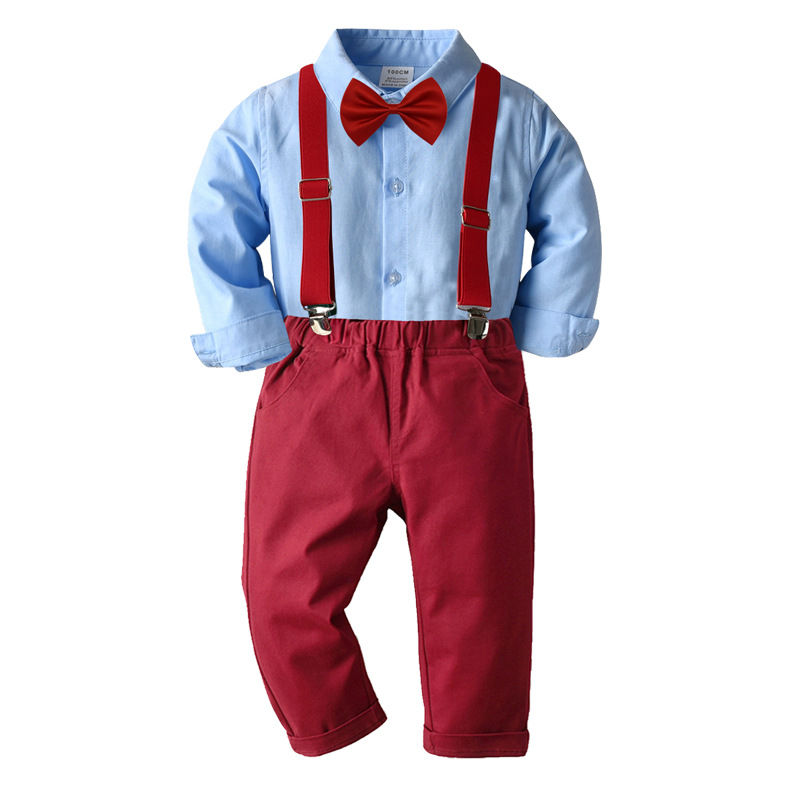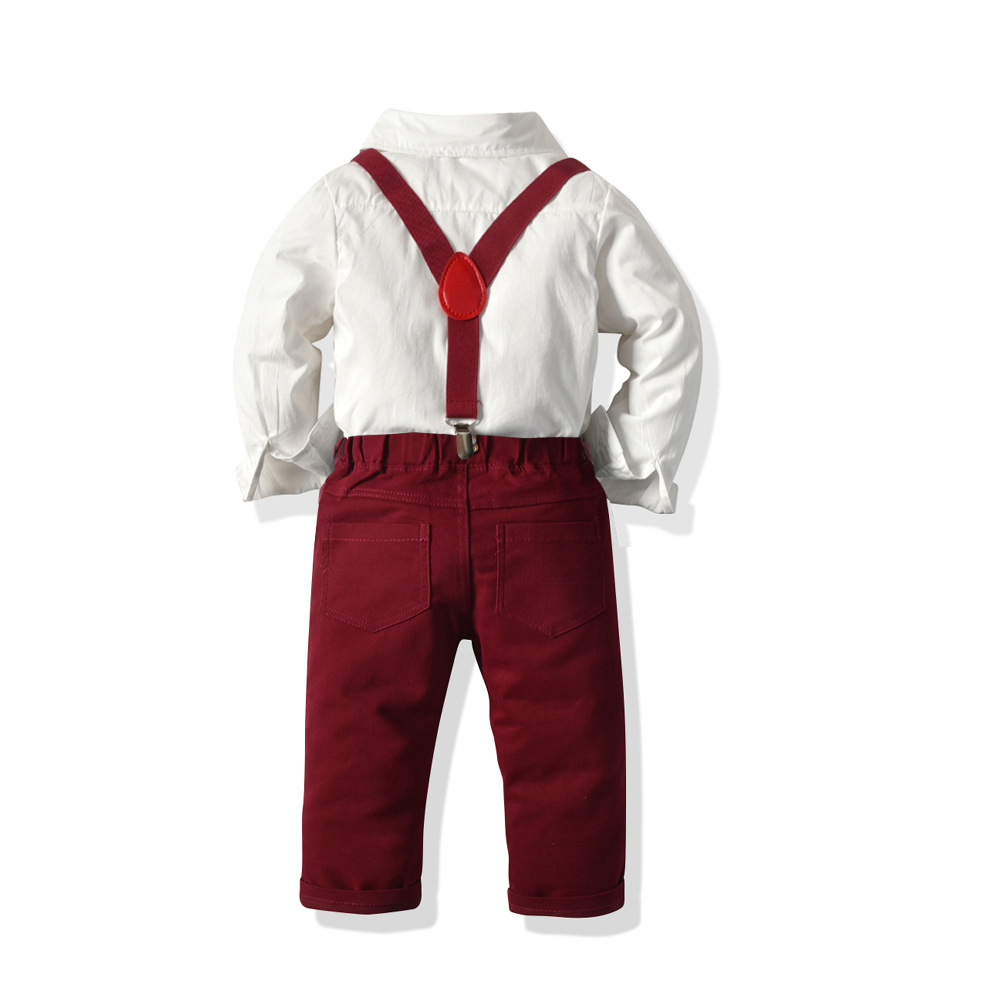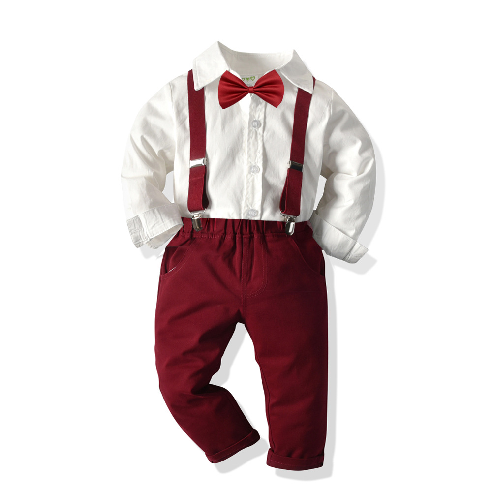 Colour:White shirt and wine red trousers four-piece suit, blue shirt + wine red trousers back bow tie suit