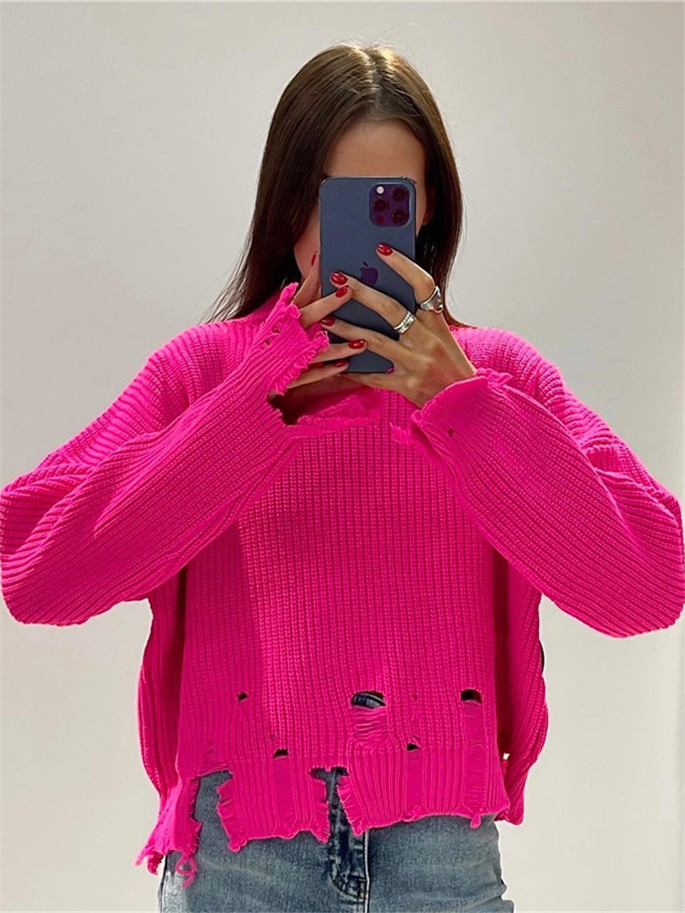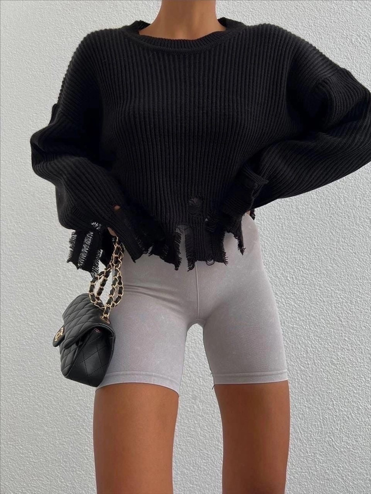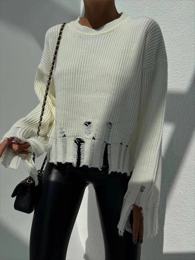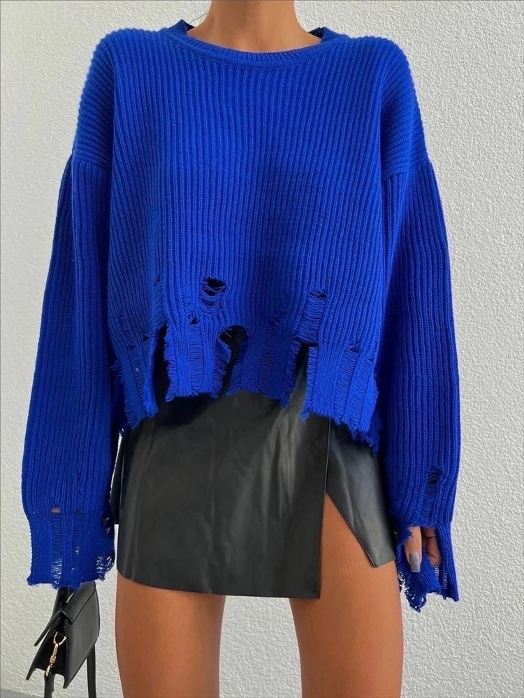 Features: Loose fit, crew neck, ripped holes