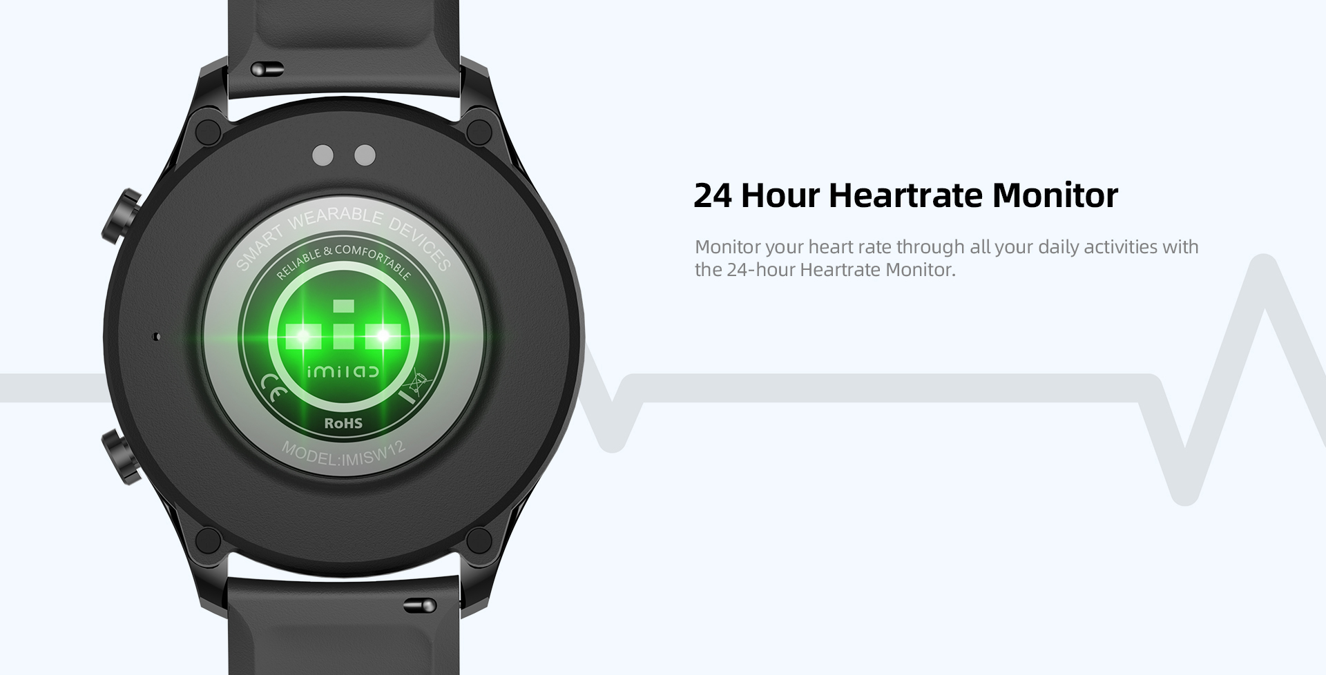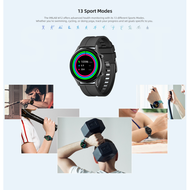 IMILAB W12 Smart Watch For Men Women Bluetooth Sports Fitness Tracker Heart Rate IP68 Waterproof -Black