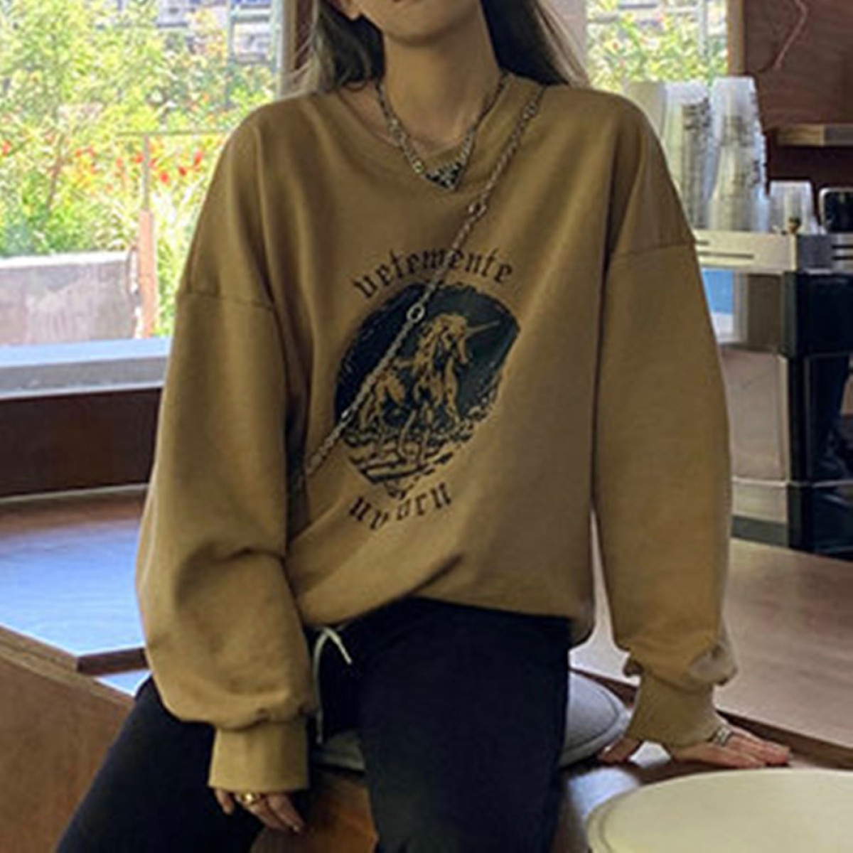 Women's Casual Round Neck Niche Print Pullover Sweater