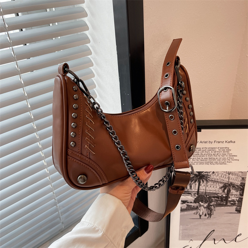 Vintage Heavy Industry Rivet Chain Underarm Bag