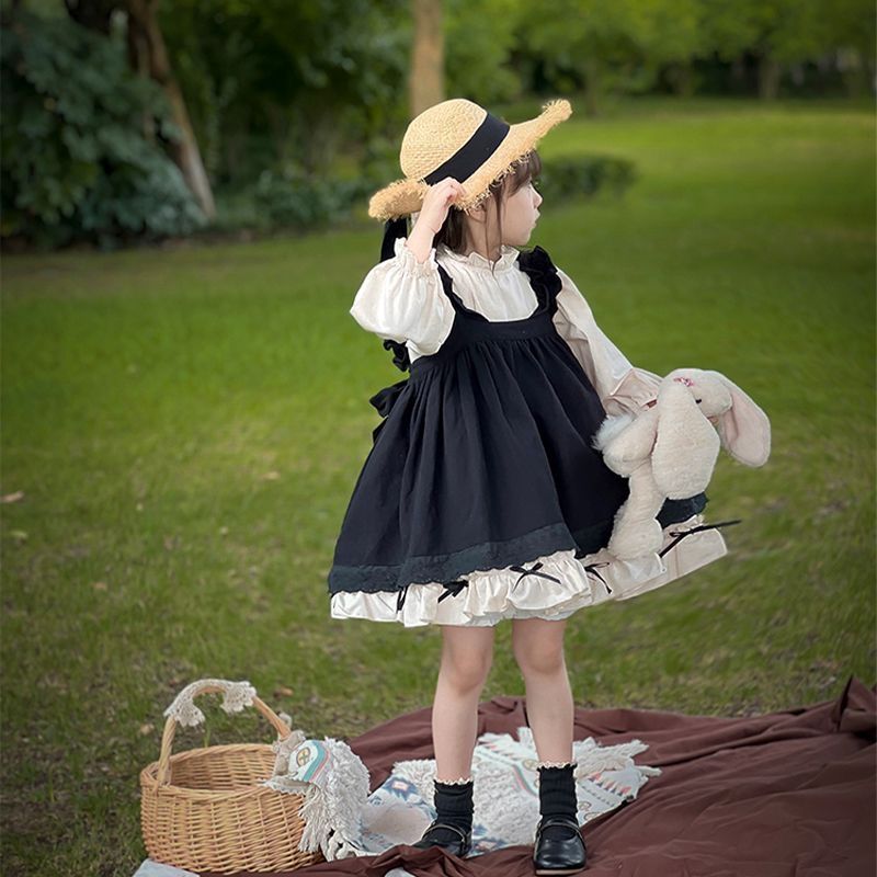 Color: black lace strap skirt+two off white bottomed skirt