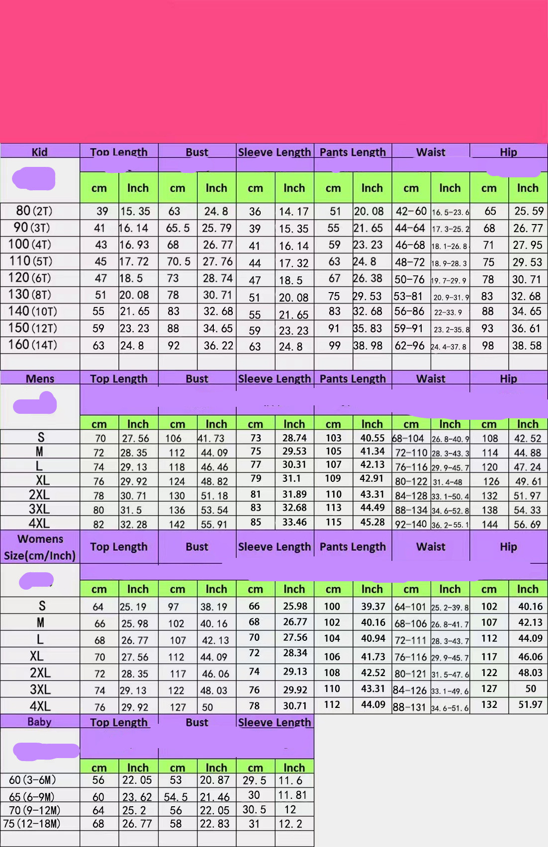 Size:Dad S, Dad M, Dad L, Dad XL, Dad 2XL, Dad 3XL, Dad 4XL, Mom S, Mom M, Mom L, Mom XL, Mom 2XL, Mom 3XL, Mom 4XL, baby 6, baby 9, baby 12, baby 18, kid 2, kid 3, kid 4, kid 5, kid 6, kid 10, kid 12, kid 14, Dog S, dog M, Dogs L, XL
