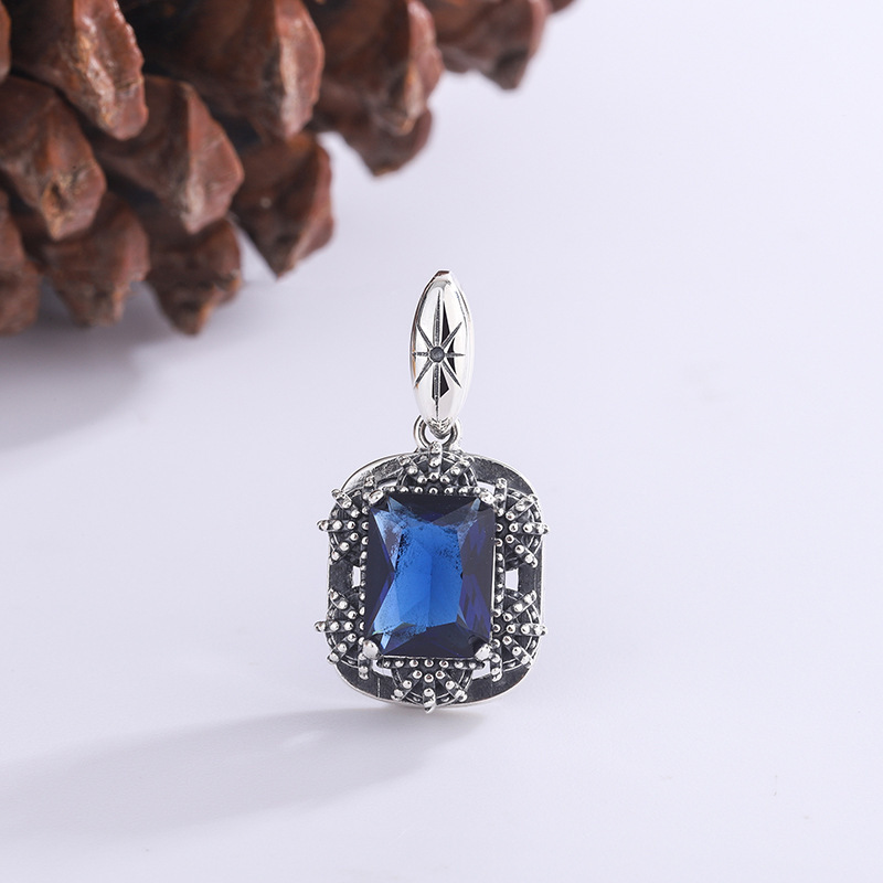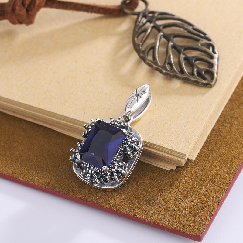 Sterling Silver S925 Green Diamond Vintage Crown Fashion Pendant