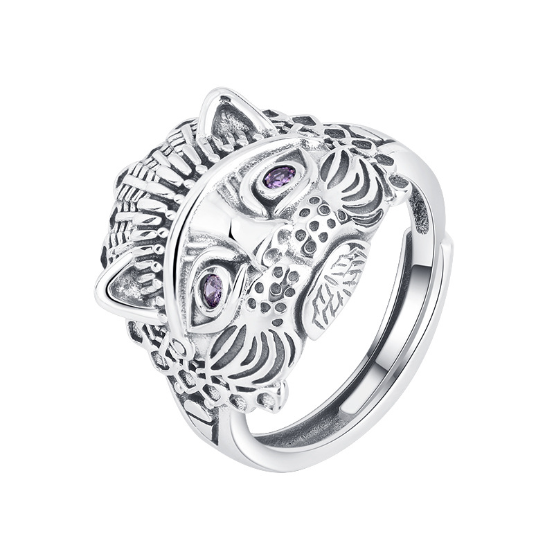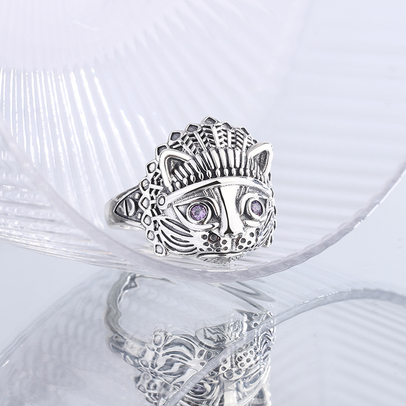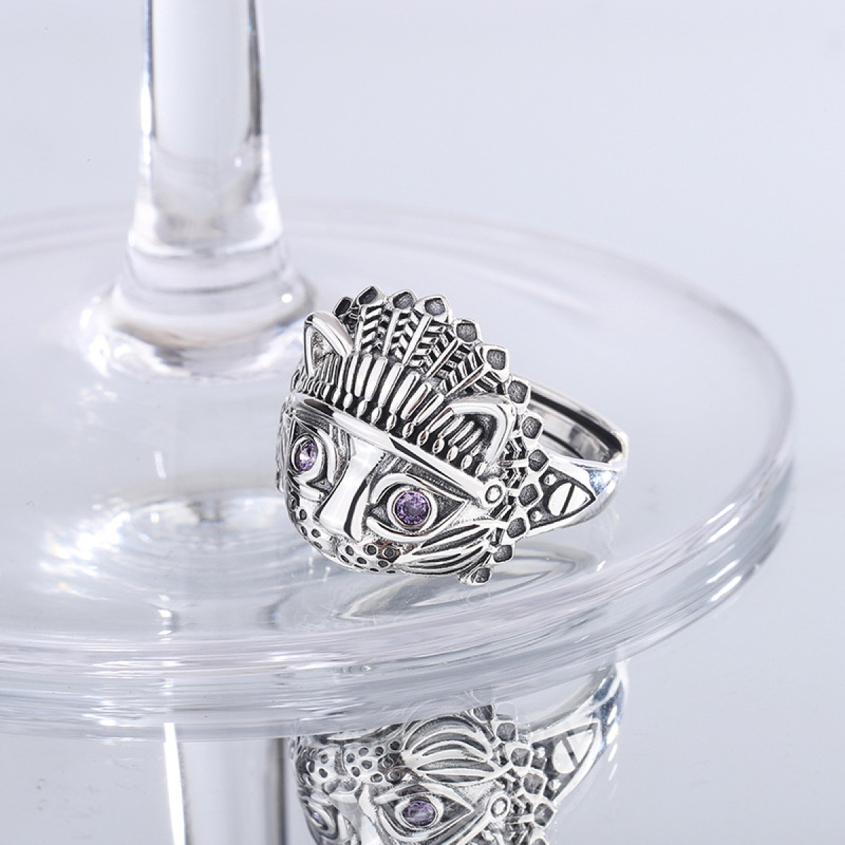 S925 Sterling Silver Chieftain Living Vintage Indian Cat Head Ring