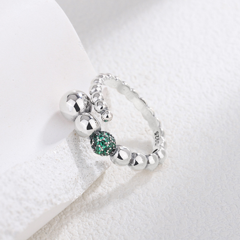 S925 Sterling Silver Personality Geometric Beaded Snowball Ring