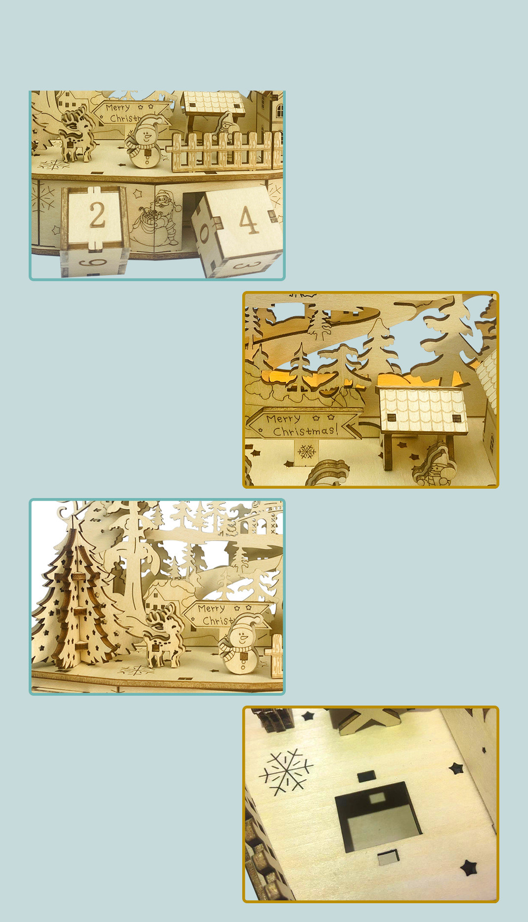 Features: warm night light, yellow light inside the box, increasing the fun of decoration; The night light battery filling place is located at the bottom of the display for easy replacement (the battery is not included in the shipment)