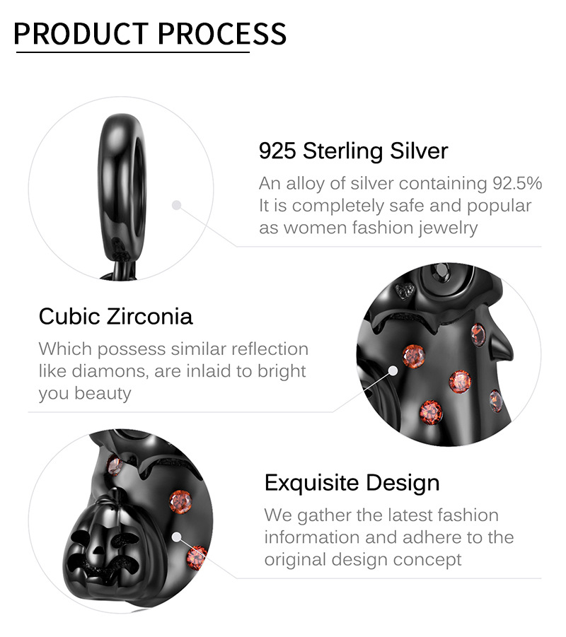 Skull Small Ghost Pendant 925 Silver Plated Black Gold Bracelet DIY Accessories Pendant