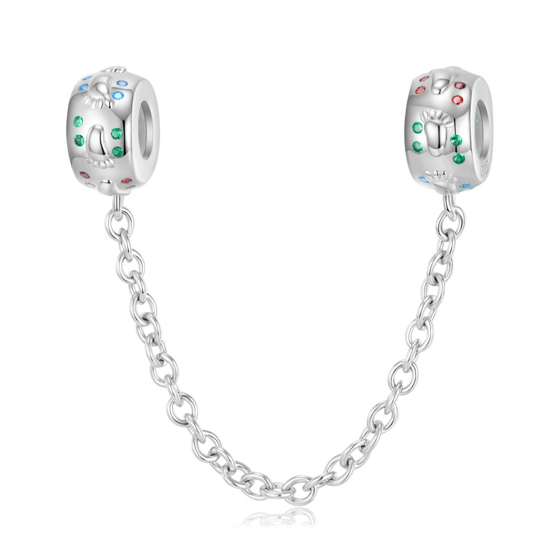 S925 Sterling Silver Footprint Protection Chain Mother's Day Simple Personality Girls Bracelet Diy Accessories String