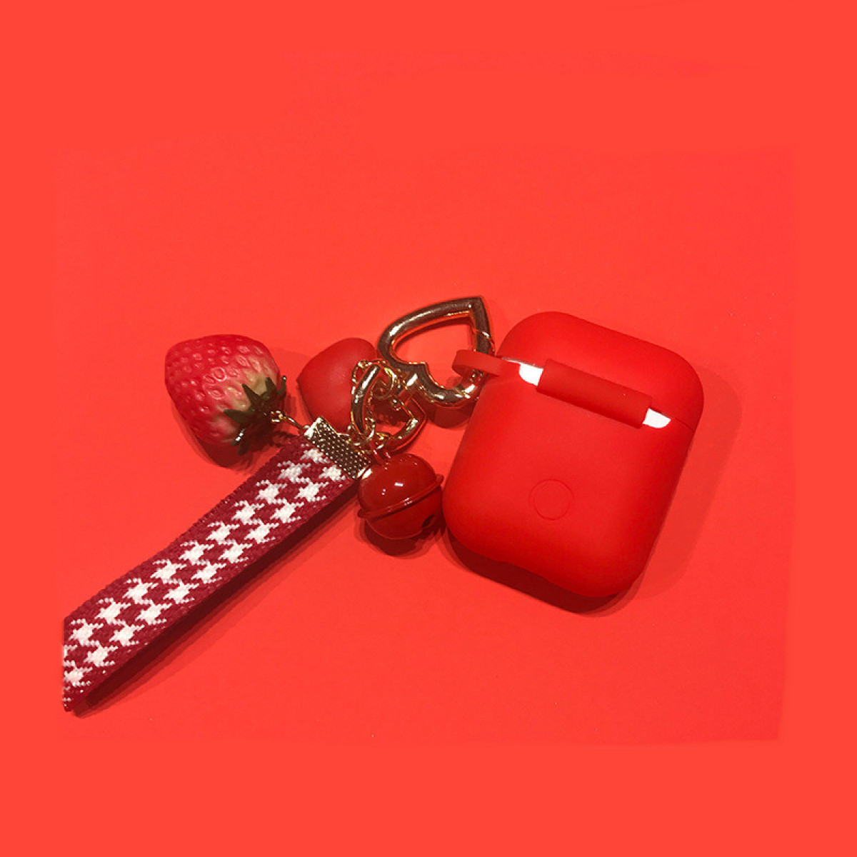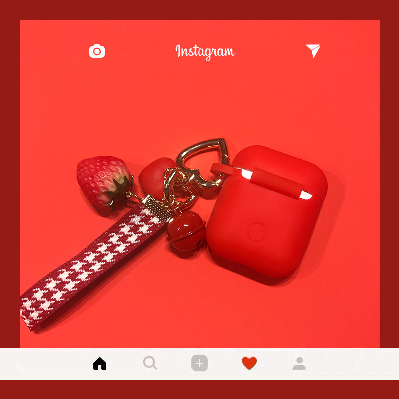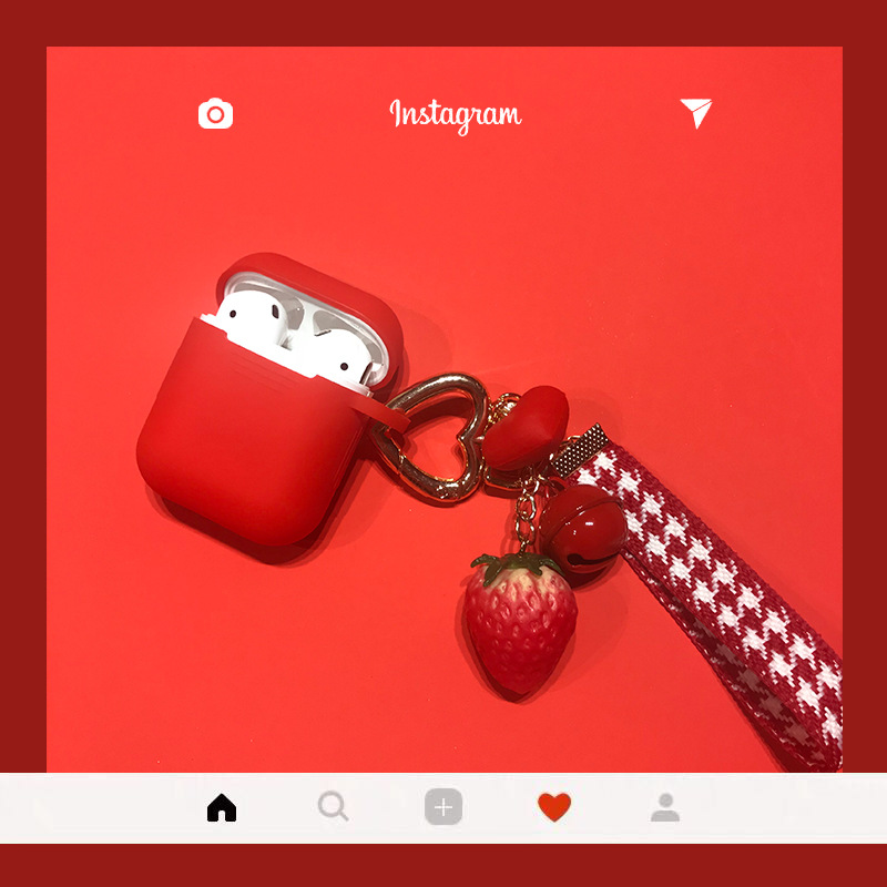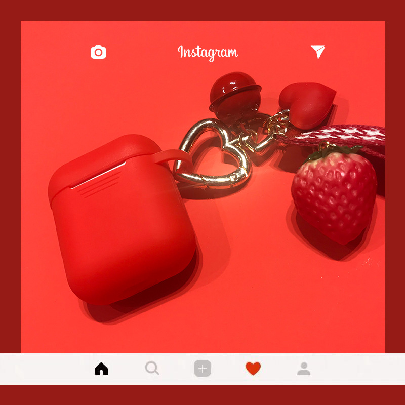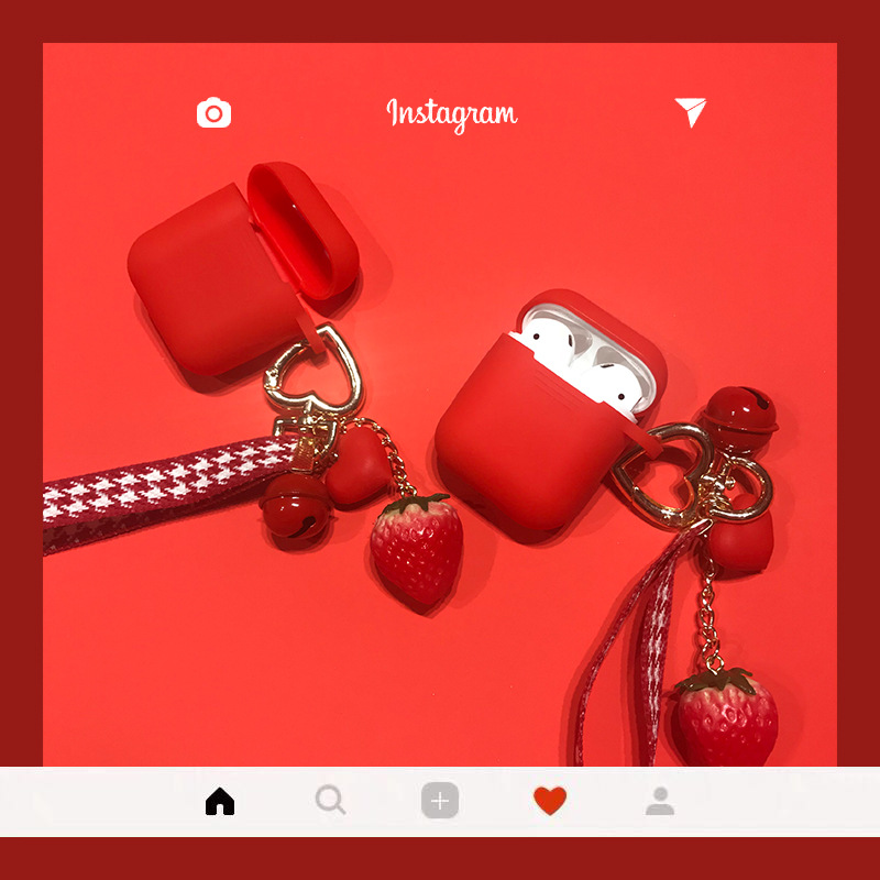 Silicone headphone case + strawberry pendant