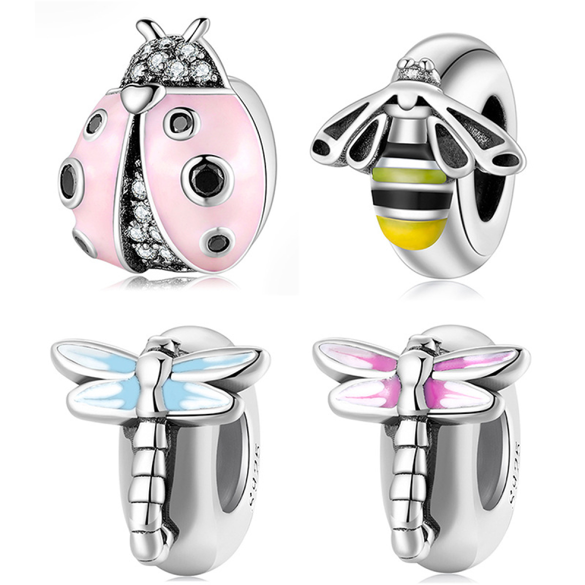 S925 Sterling Silver Beads Cute Insect Series Jewelry Plug Spacer Beads DIY Accessories Beads Enamel Color Silver Jewelry