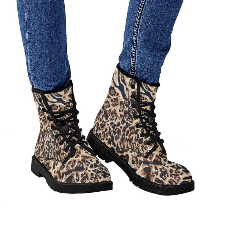 Printed Women's Leather Flat Bottom Low Heel British Martin Boots