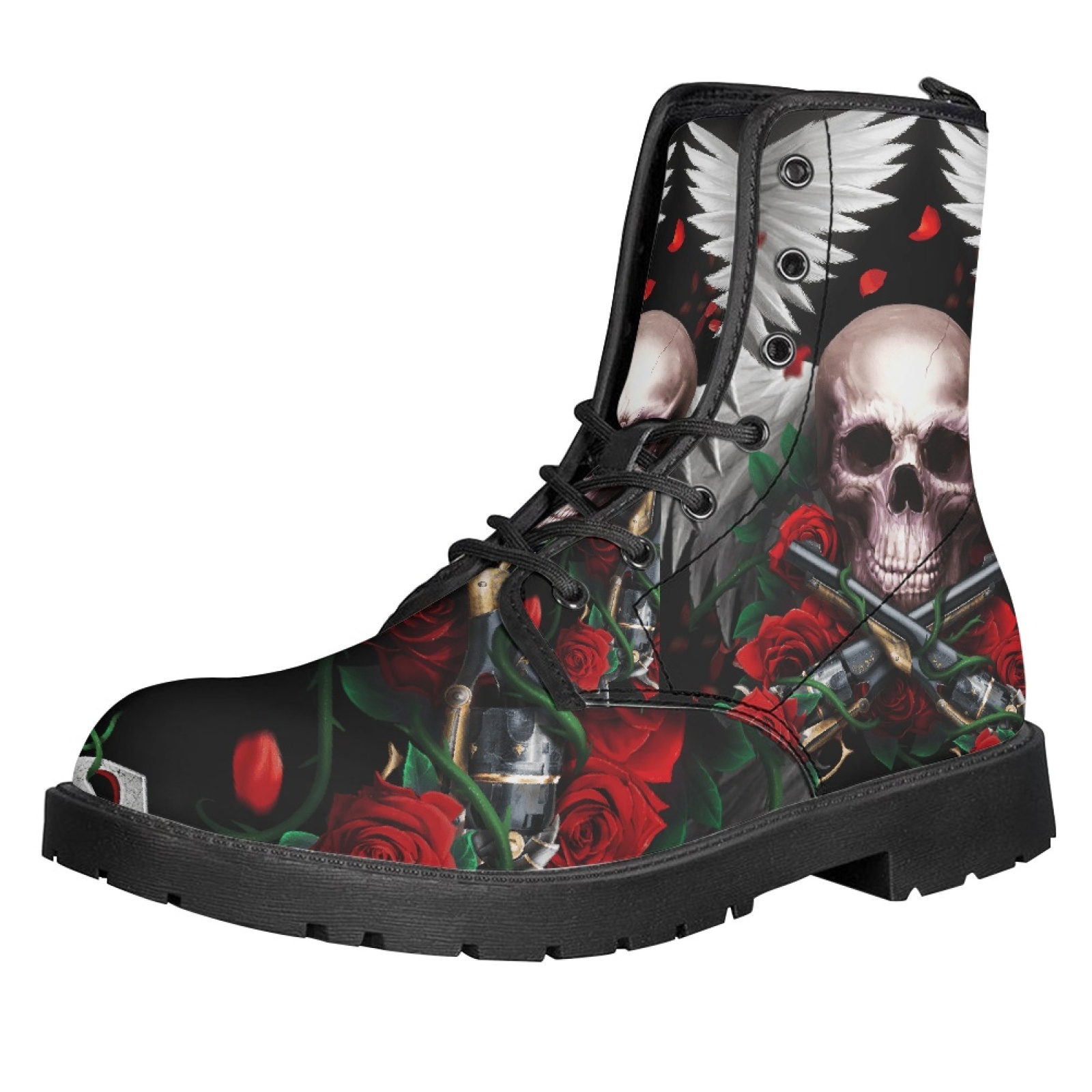 Printed Women's Leather Flat Bottom Low Heel British Martin Boots