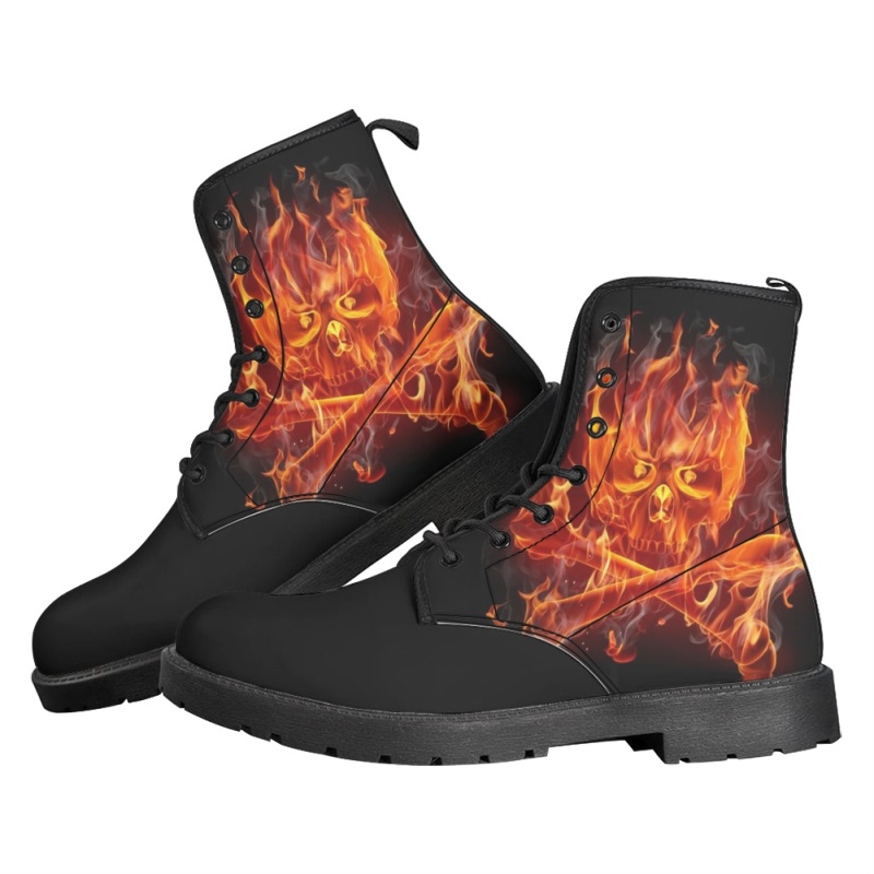 Printed Women's Leather Flat Bottom Low Heel British Martin Boots